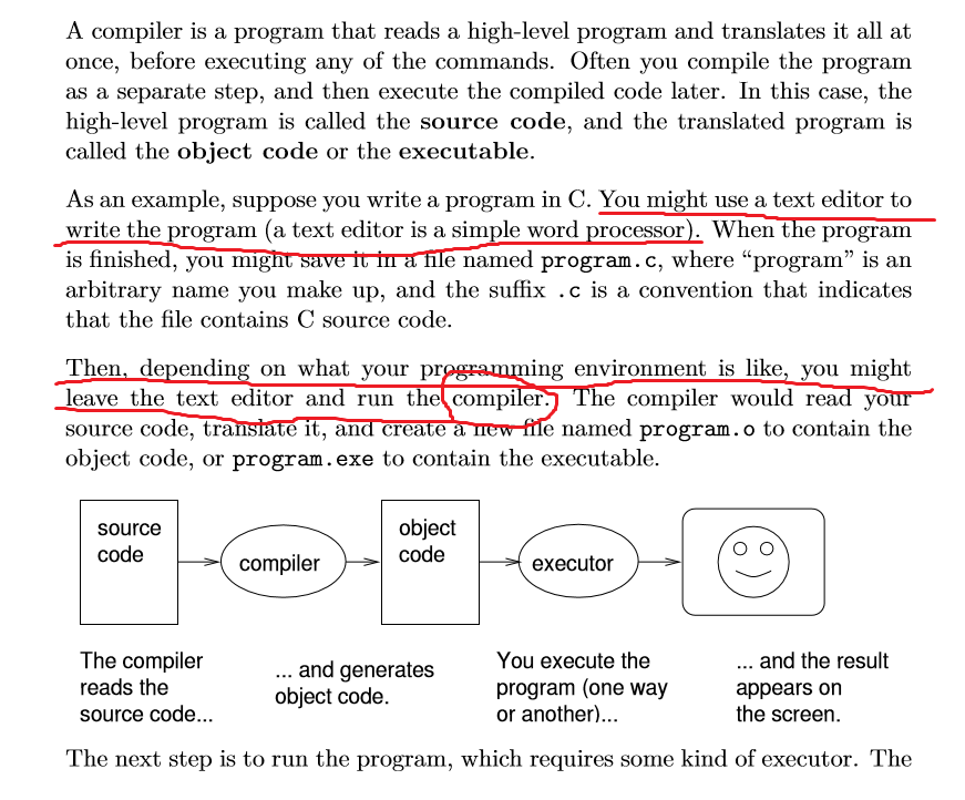 首先我们得对 C 语言/ C++ 程序的运行流程有一个基本的认识,从 Think-C 的1.1节我们可以知道。C/C++的源代码 (source code) 需要经过编译 (compiling) 这个过程转换为二进制可执行文件才能运行。