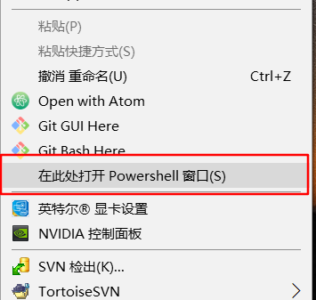 首先随便打开一个文件夹(桌面也可),按住 shift 键,右击空白处,你会发现右键菜单多了一项“在此处打开命令窗口”,如果你安装了 Windows 10 的最新更新,你看到的会和截图一样,打开的是 PowerShell ,没关系!两个东西除了界面和一些具体的功能不一样,用起来是差不多的。